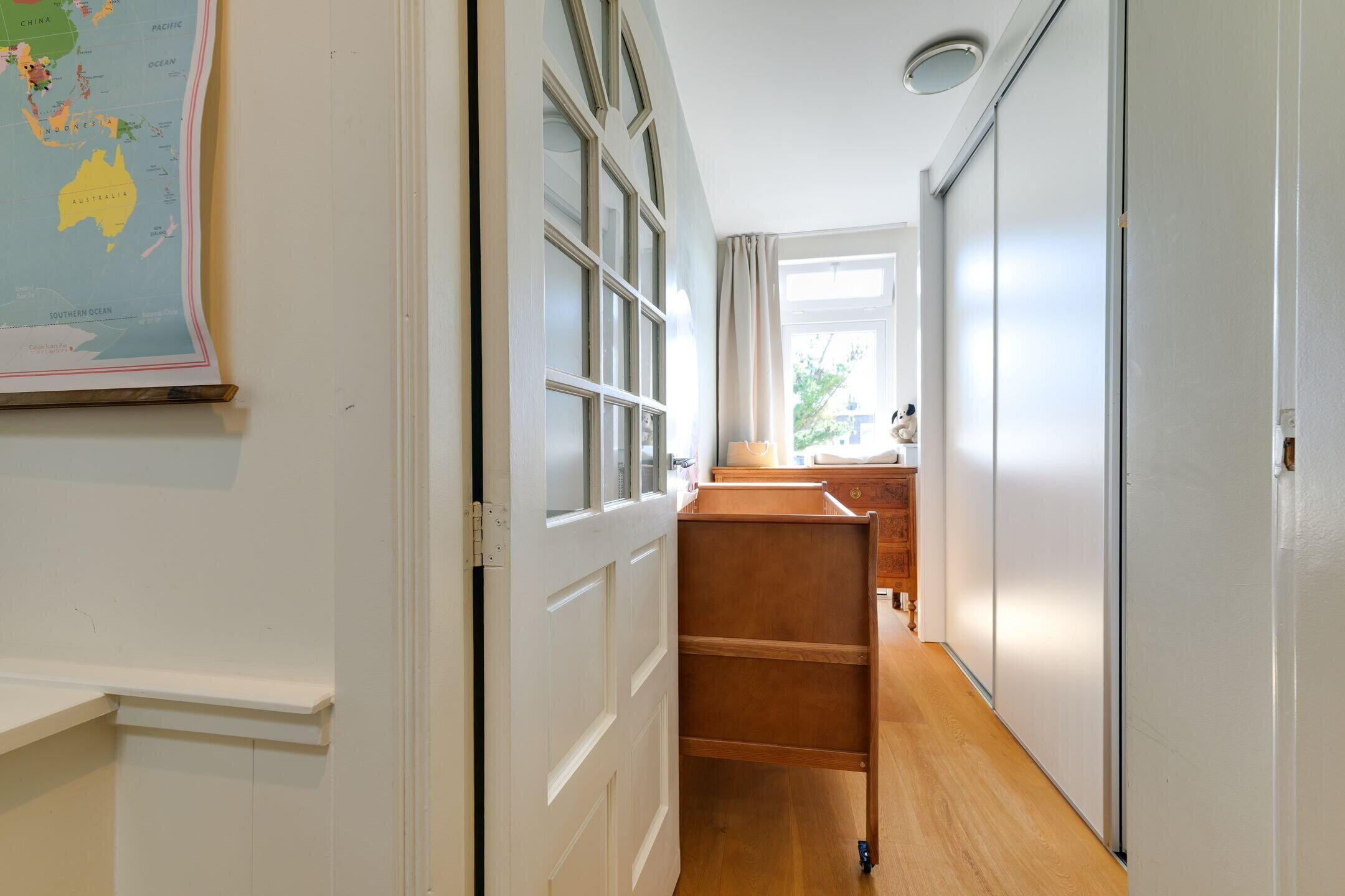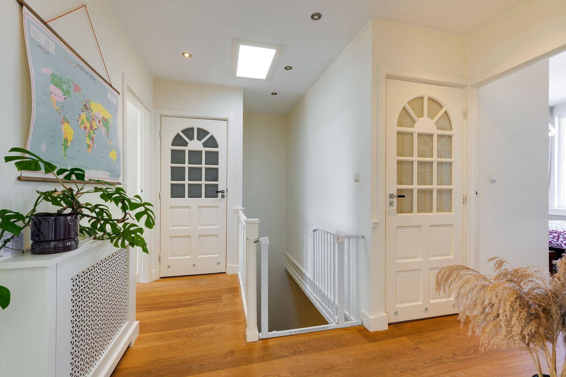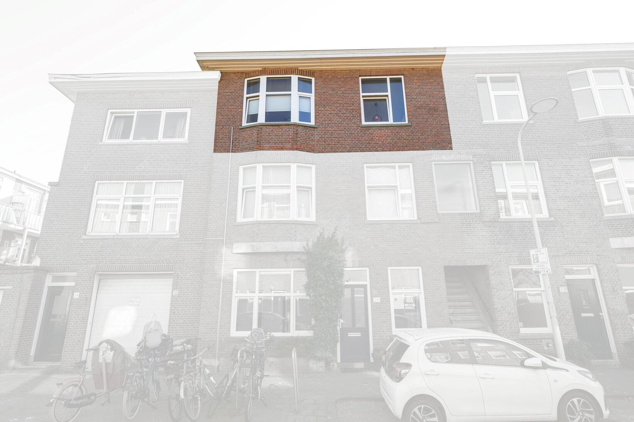 Indeling: Via het typisch Haagse open portiek bereik je de voordeur van de woning op de eerste verdieping.
