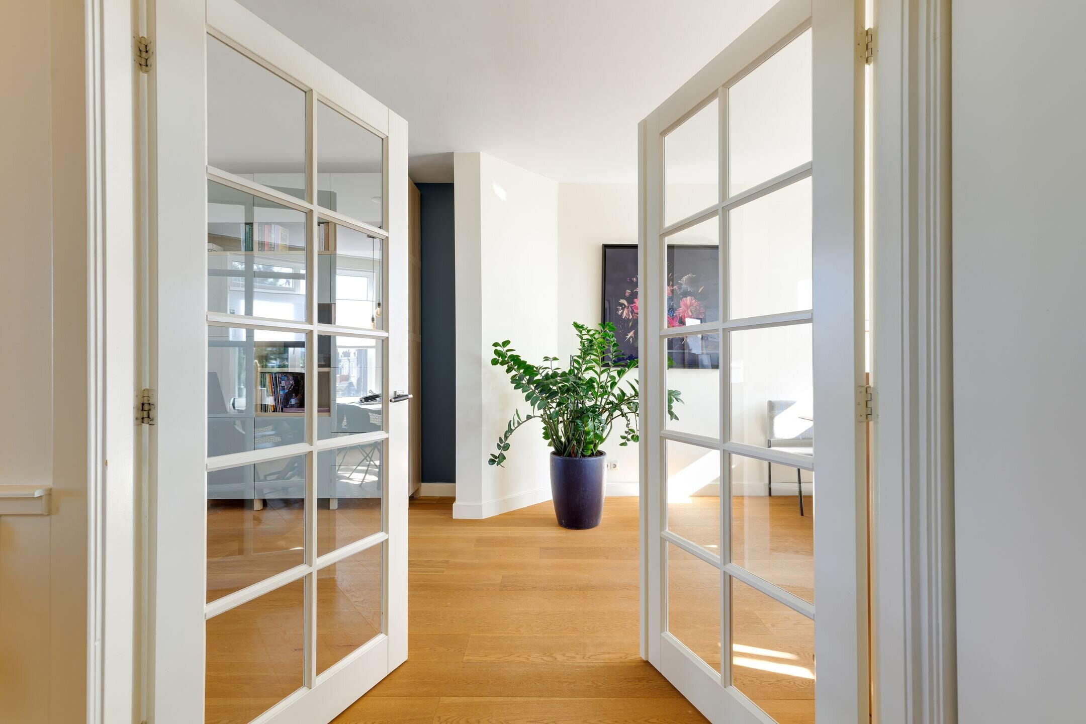 - De kozijnen zijn uitgevoerd in kunststof met HR++ glas